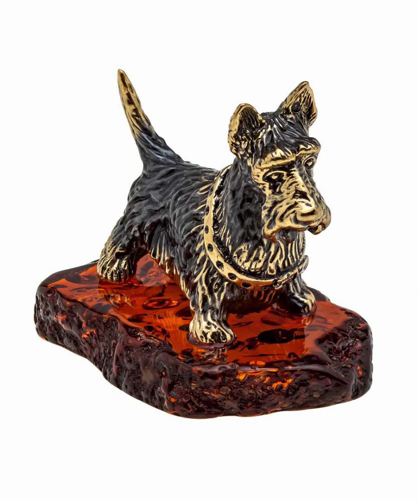 Фигурка Собака Скотч Терьер из бронзы и янтаря